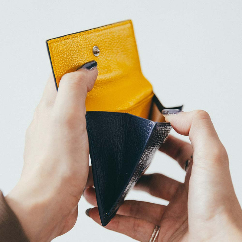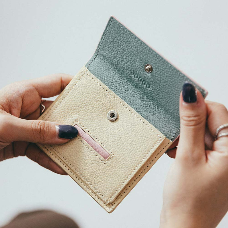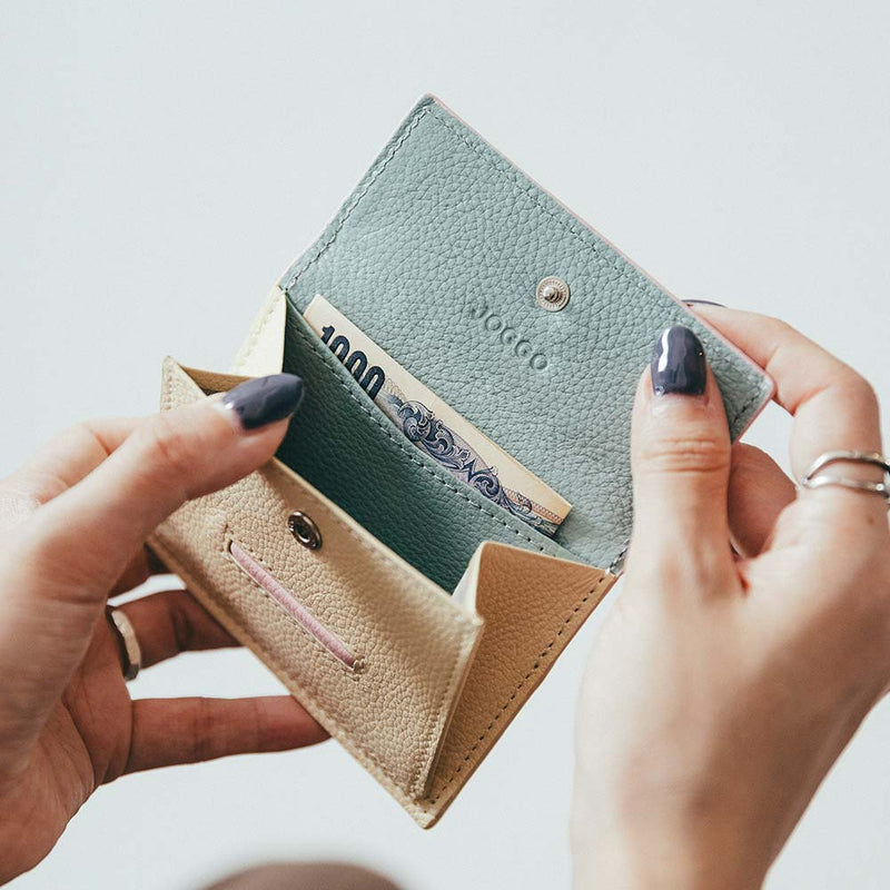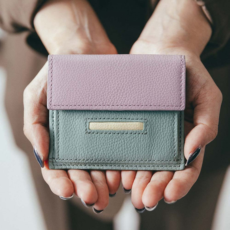 Dompet mini dengan desain penutup seperti atap yang khas. Total 7 warna dapat disesuaikan. Setiap area penyesuaian bersifat independen, dan semua bagian dapat dipilih satu per satu. Direkomendasikan bagi mereka yang menghargai orisinalitas dan mereka yang ingin menikmati desain sendiri. Tempat dompet koin dan uang kertas ditempatkan di ruang yang sama (dengan sekat) dan menyatu dengan aman. Terdapat tiga kantong kartu, dan bagian belakangnya terdapat kantong, sehingga Anda dapat memasukkan dan mengeluarkan kartu tanpa membuka atau menutupnya, dan Anda juga dapat melakukan pembayaran sentuh.