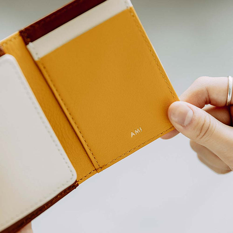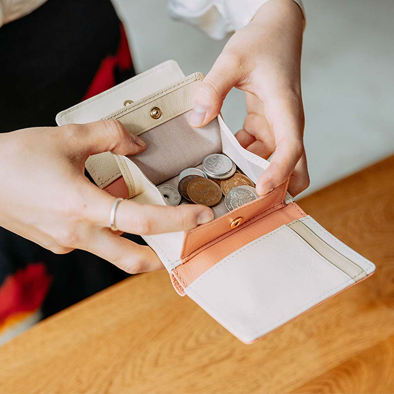 Dompet mini lipat tiga yang mudah disimpan, bahkan di dalam tas kecil sekalipun. Dompet ini memiliki 6 slot kartu, slot uang kertas yang tidak membuat Anda harus melipat uang kertasnya, dan slot koin yang mudah digunakan.