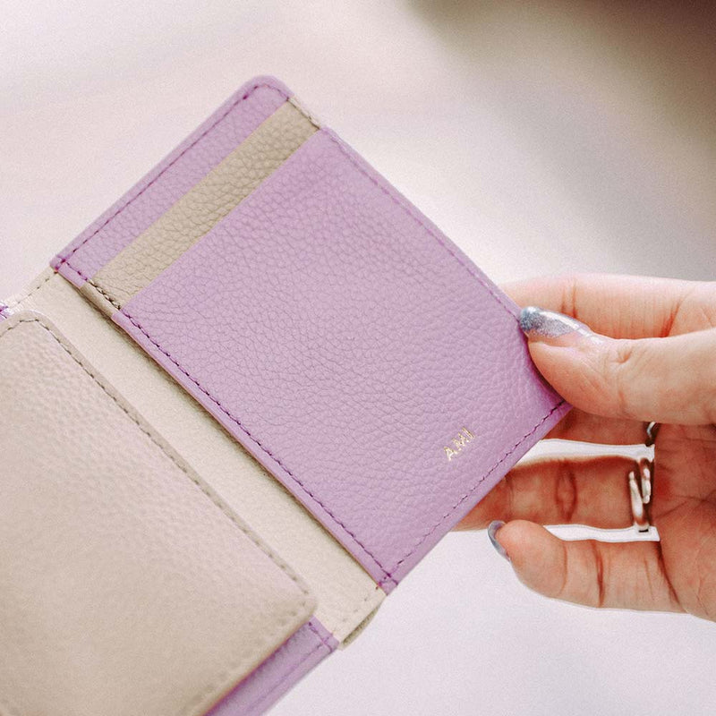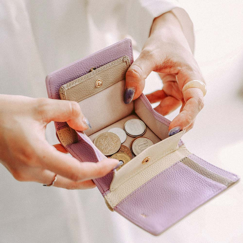 Dompet mini lipat tiga yang mudah disimpan, bahkan di tas kecil sekalipun. Pola kulit yang timbul memberikan kesan mewah. Dompet ini memiliki 6 slot kartu, slot uang kertas yang tidak membuat Anda harus melipat uang kertasnya, dan slot koin yang mudah digunakan.