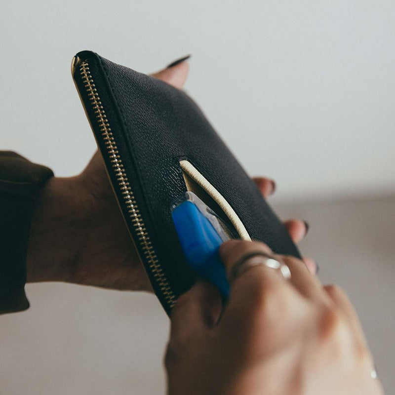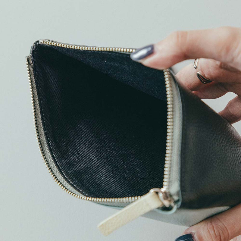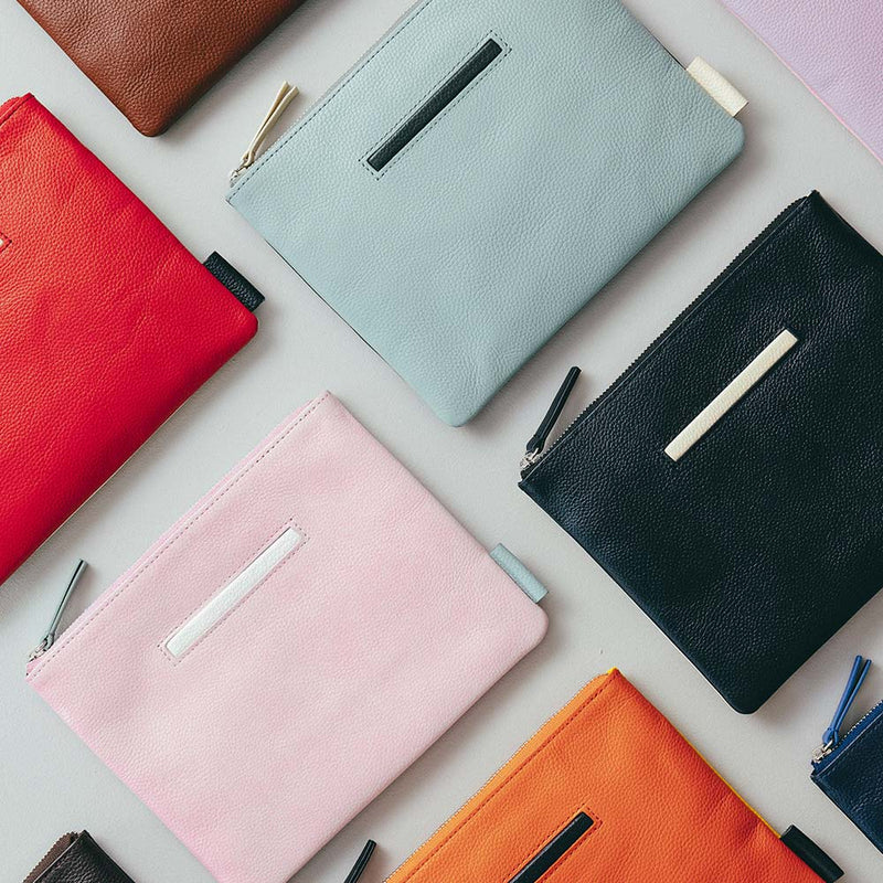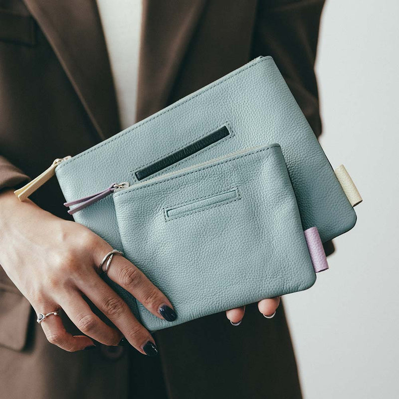 Flat pouch ukuran M ini memiliki bentuk yang simpel dan mudah digunakan, ditambah dengan saku dan tag sebagai aksen. Setiap pouch dibuat dengan tangan oleh pengrajin dan sangat cocok sebagai hadiah untuk orang tercinta maupun untuk diri sendiri.