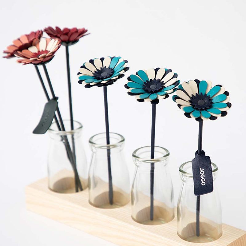 Desainnya didasarkan pada motif ``Gerbera''. Aksesoris kulit khusus ini dibuat satu per satu dengan menggunakan kulit asli berkualitas tinggi dan sangat cocok sebagai hadiah untuk orang tersayang, baik pria maupun wanita. Untuk kenangan yang tidak akan pernah layu.
