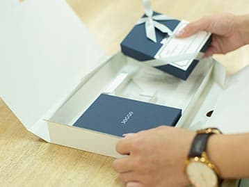Untuk menciptakan momen indah dalam menyampaikan perasaan Anda, balutannya harus elegan dan istimewa. Dompet akan dibungkus dengan kotak kado, dan tas akan dibungkus dengan tas kado.